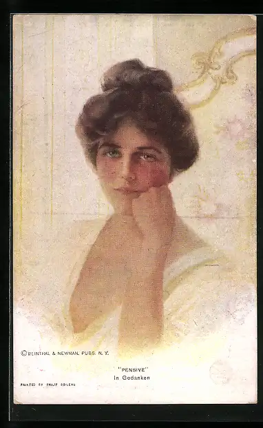 Künstler-AK Philip Boileau: Frau in Gedanken