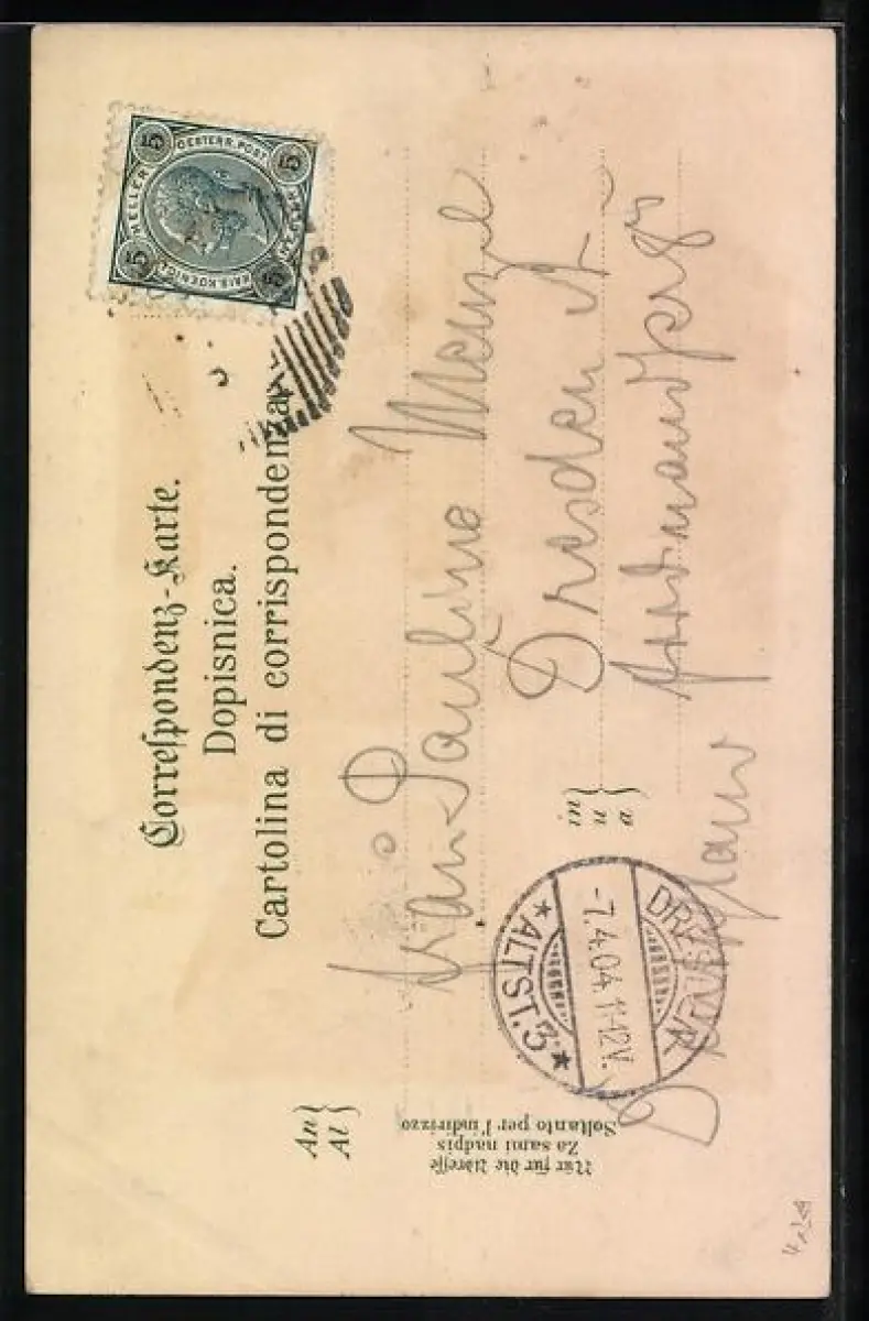 alte Ansichtskarte, gelaufen 1904, Stempelspur, guter Zustand