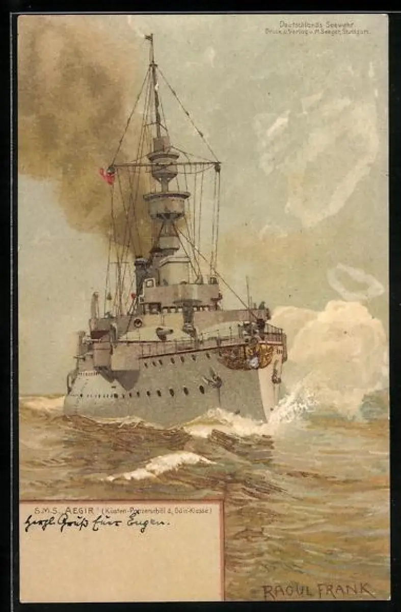 Künstler-AK Raoul Frank: Kriegsschiff S.M.S. Aegir auf hoher See