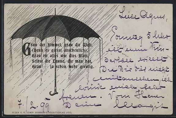 Künstler-AK Regenschirm im Regenschauer