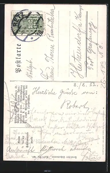 alte Ansichtskarte, gelaufen 1922, Stempelspur, guter Zustand