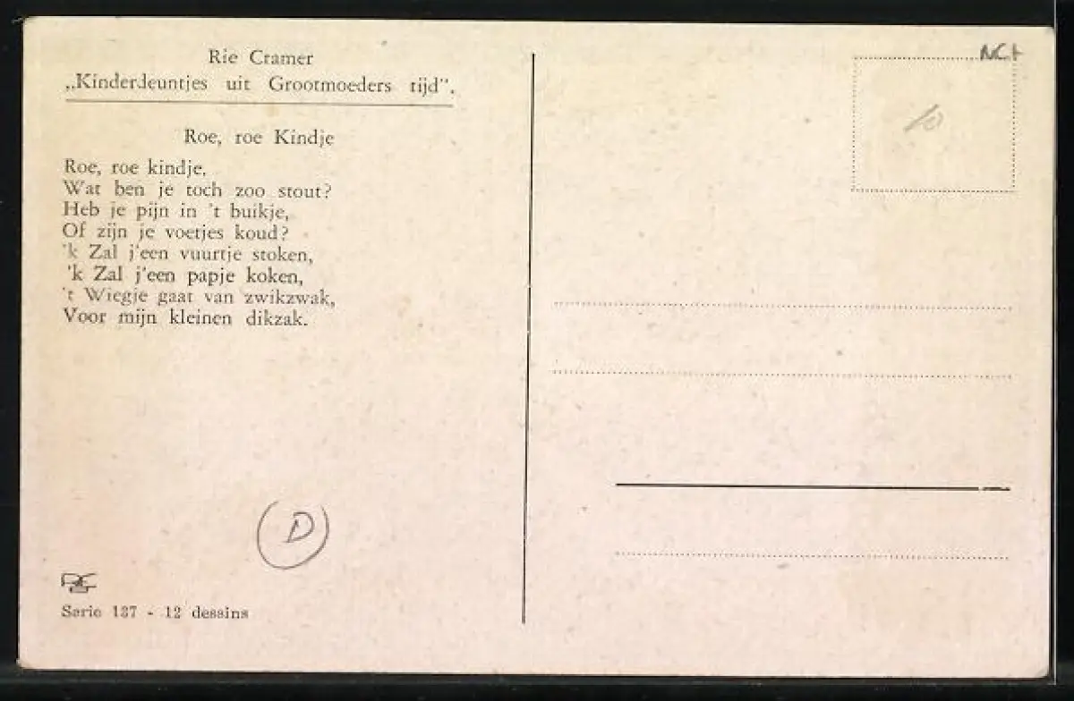 Künstler-AK Rie Cramer: Roe, roe Kindje