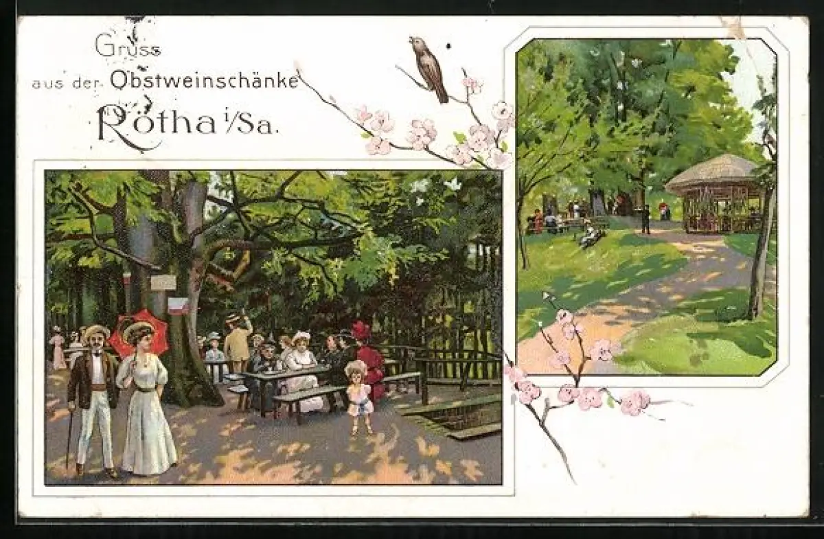 Künstler-AK Rötha i. Sa., Gäste in der Obstweinschänke