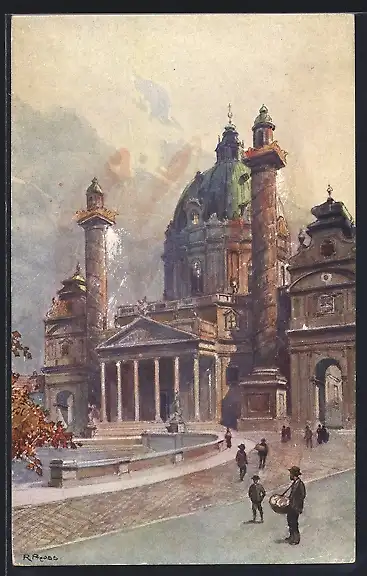Künstler-AK Rudolf Preuss: Wien, Blick auf die Karlskirche