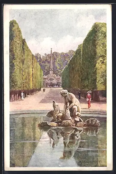 Künstler-AK Rudolf Schmidt: Wien-Schönbrunn, Denkmal mit Teich