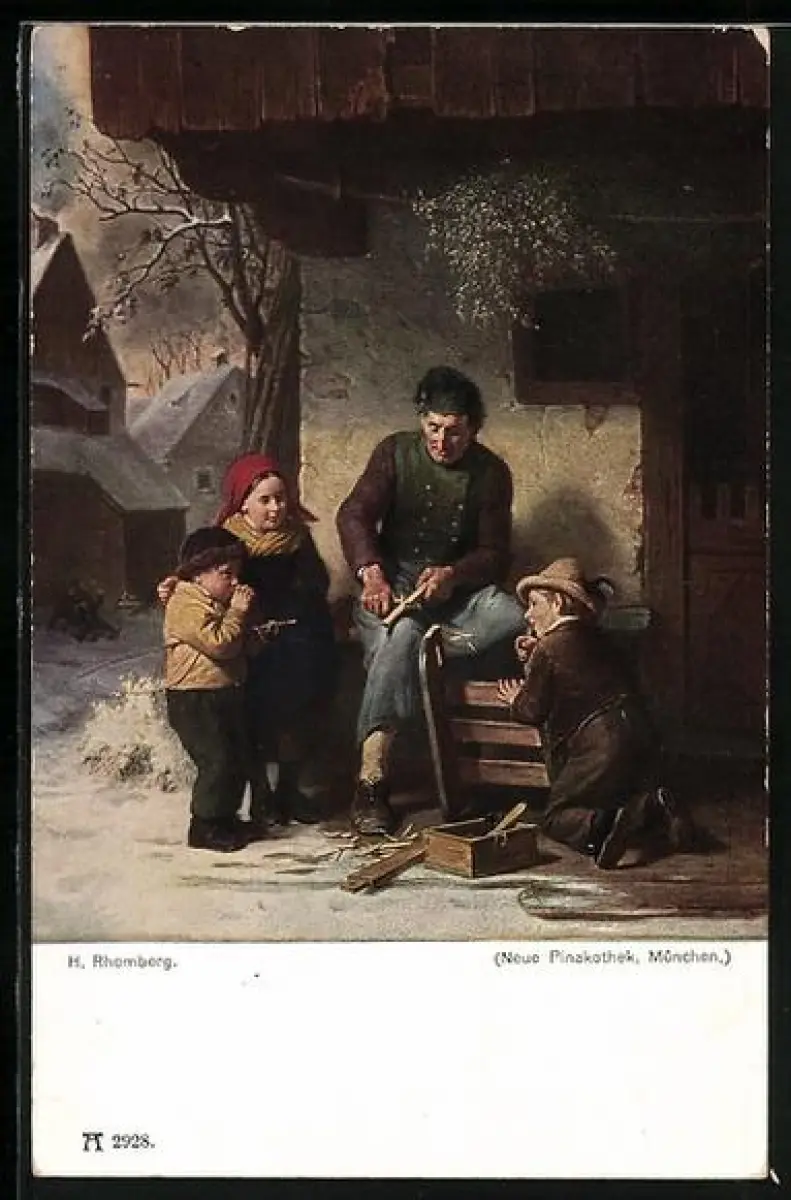 Künstler-AK Schlittenschnitzer, Tischler und Kinder