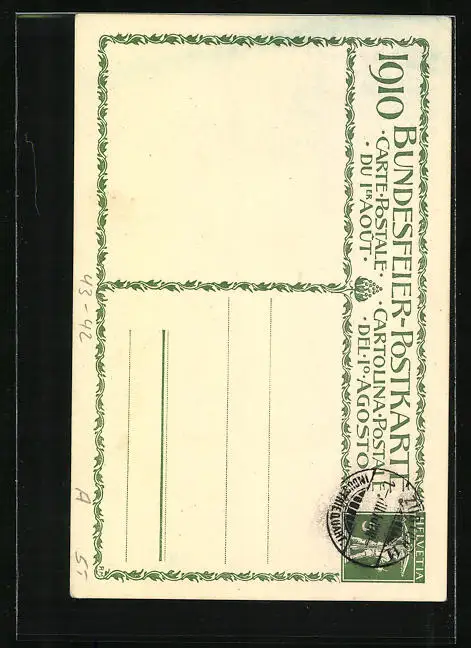 Künstler-AK Schweizer Bundesfeier 1910, Die Wächter der Heimat