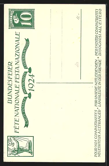 Künstler-AK Schweizer Bundesfeier 1924, Mutter mit Kindern am Fenster sitzend