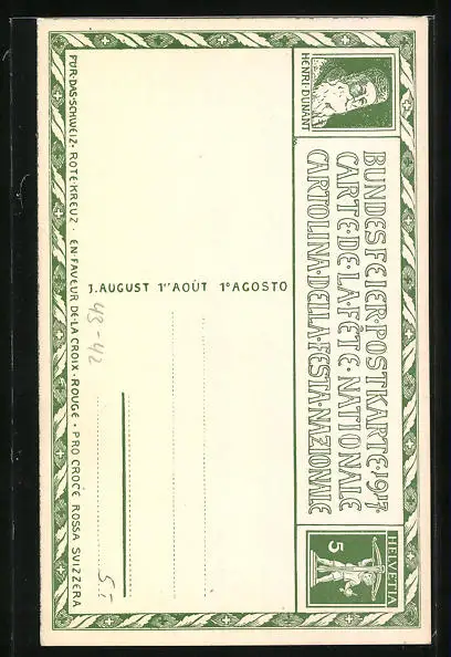 Künstler-AK Schweizer Bundesfeier, Für das Schweiz. Rote Kreuz