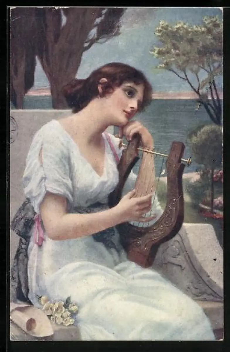 Künstler-AK Seifert: Harmonie, Frau mit Harfe