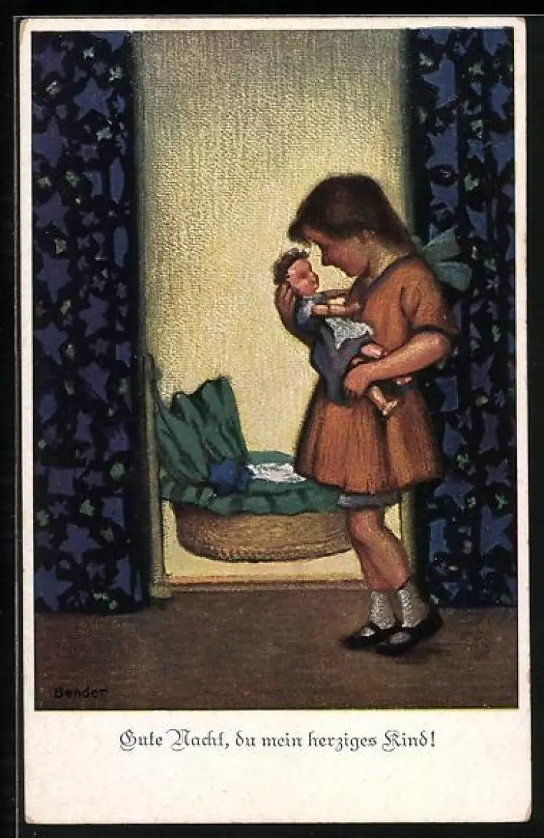 Künstler-AK St. Bender: Kind bringt Puppe ins Bett
