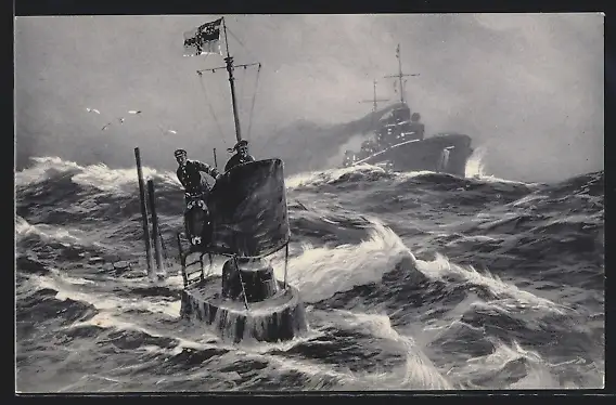 Künstler-AK Stoewer: Unterseeboot in der Nordsee Auf der Wacht