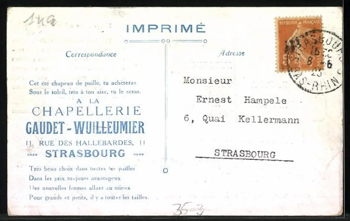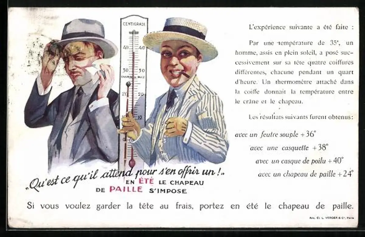 Künstler-AK Strasbourg, Chapellerie Gaudet-Wuilleumier, 11, Reu des Hallebardes, 11, Zwei Herren am Thermometer, Reklame