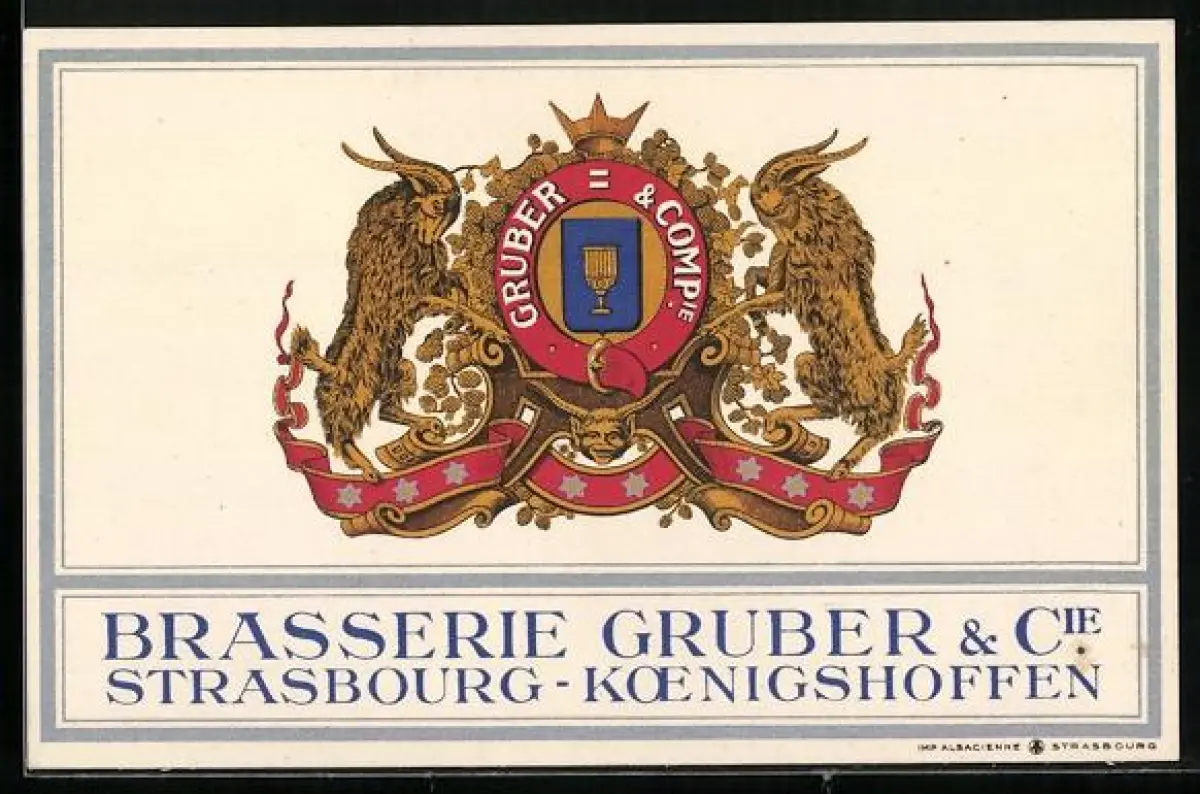 Künstler-AK Strassbourg, Brasserie Gruber & Cie, Brauerei-Werbung
