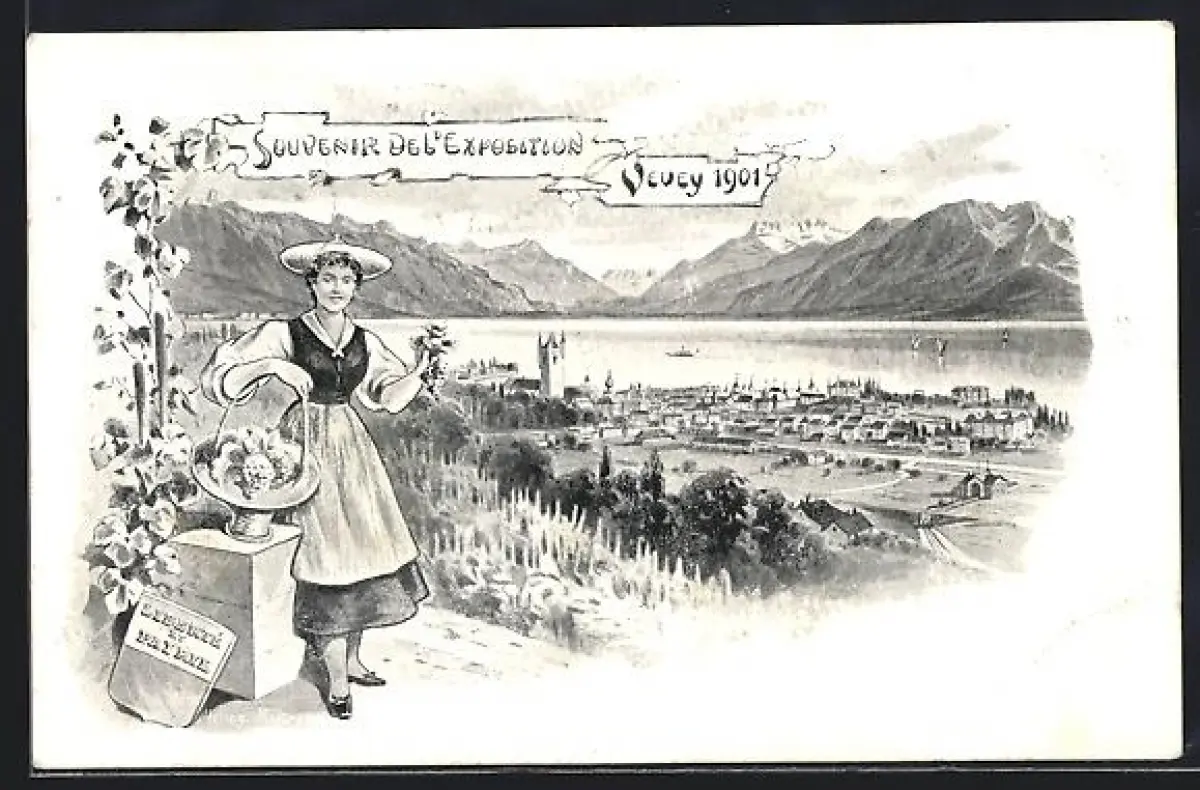 Künstler-AK Vevey, Exposition 1901, Panorama