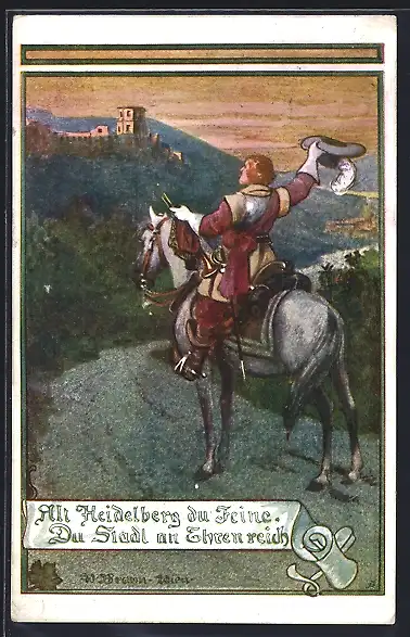 Künstler-AK W. Braun: Deutscher Weltbund, Alt Heidelberg du Feine, Du Stadt an Ehren reich, Reiter