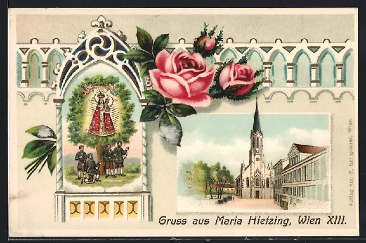 Künstler-AK Wien, Kirche Maria Hietzing und Gnadenbild
