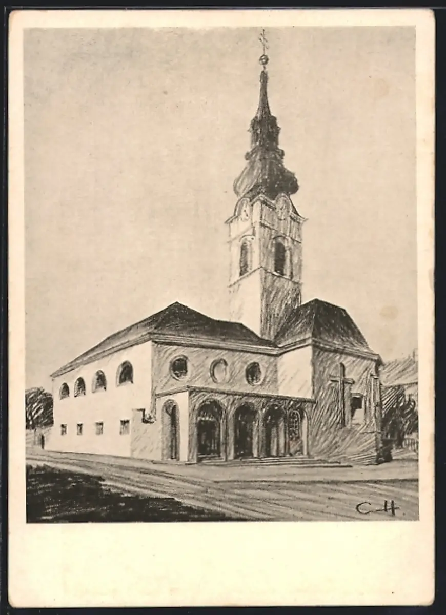 Künstler-AK Wien-Mauer, Neue Pfarrkirche zum heiligen Erhard