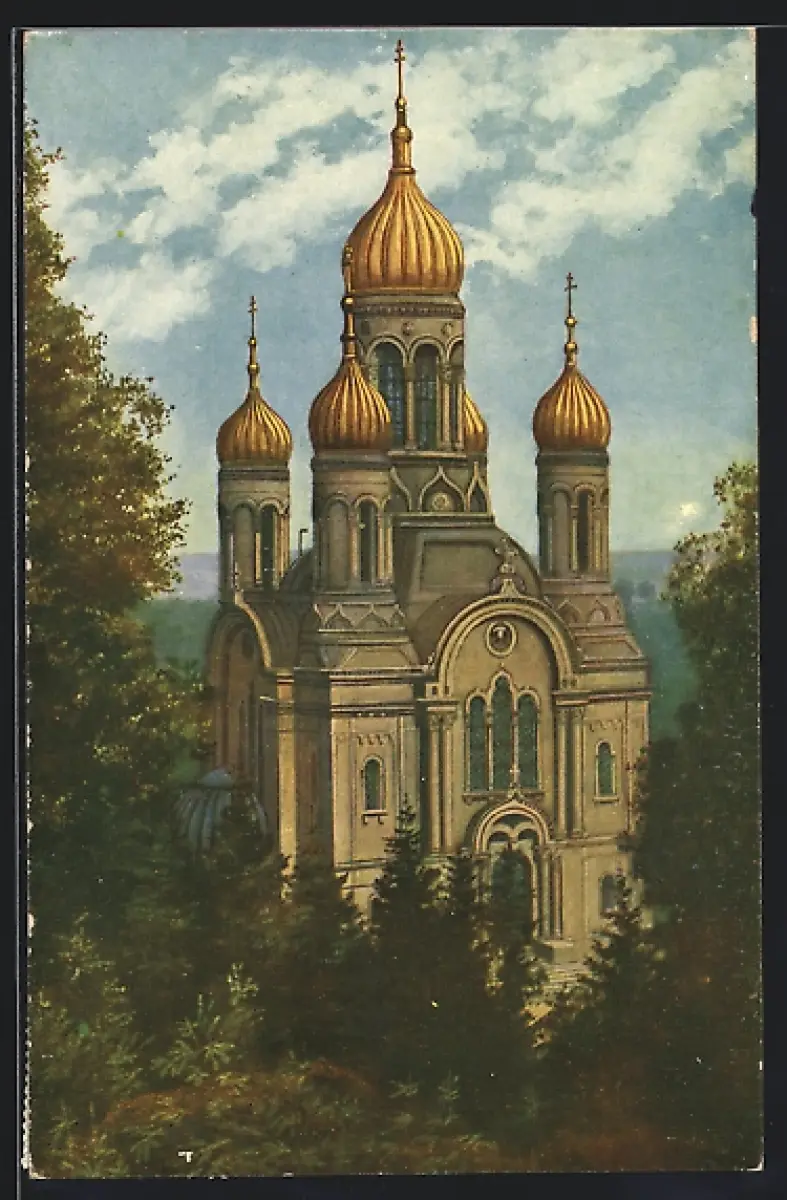 Künstler-AK Wiesbaden, Russische Kirche auf dem Neroberg