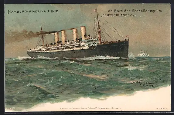 Künstler-AK Willy Stoewer: Passagierschiff Deutschland pflügt durch die raue See