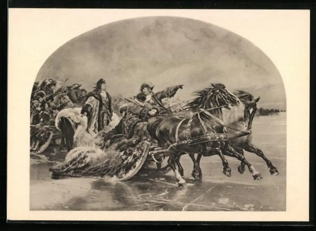 Künstler-AK der Grosse Kurfürst beim Übergang über das kurische Haff 1679