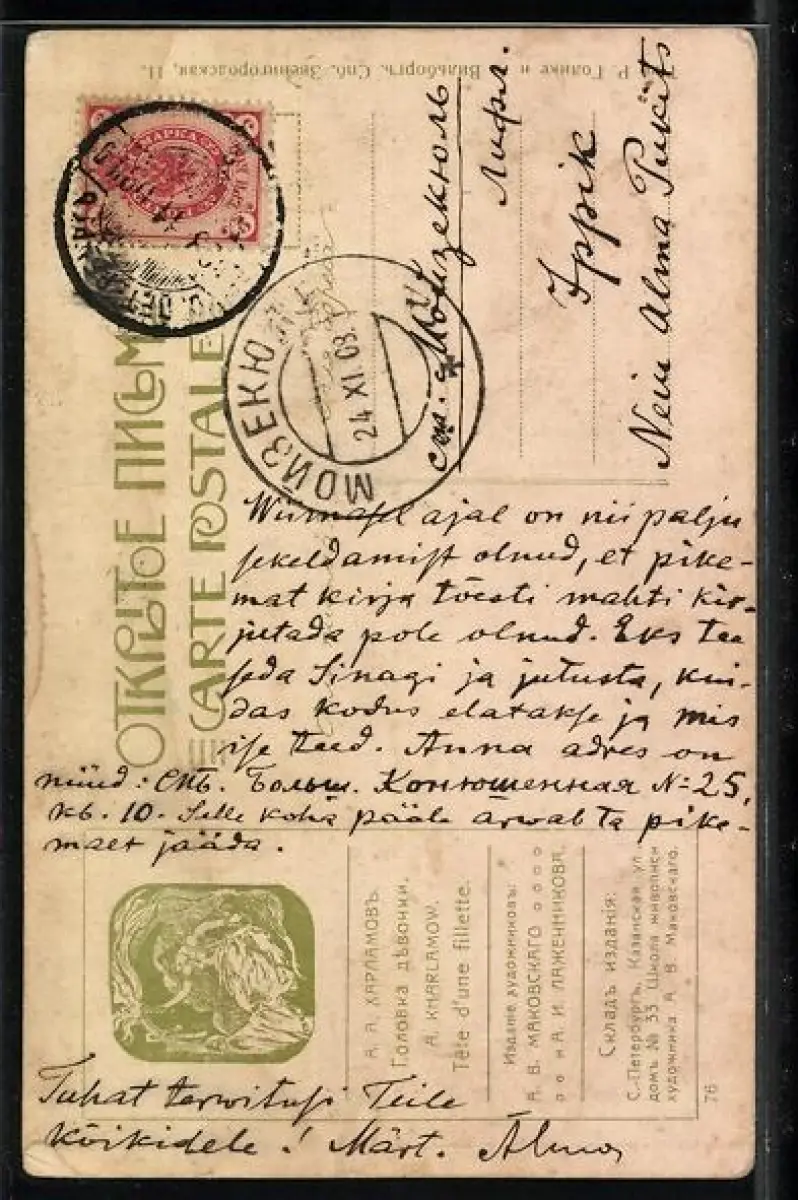 Künstler-AK sign. A. Kharlamow: Studienkopf, Mädchen mit Haarband im Portrait
