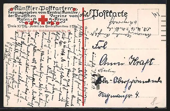 Personenbezogene Daten auf der Rückseite der Karte wurden durch blauen Textmarker unkenntlich gemacht. Die blauen Stellen sind auf die Vorderseite durchgeweicht und wirken sich negativ auf das Postkartenfoto aus