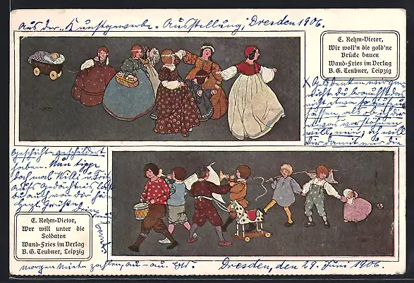 Künstler-AK sign. E. Rehm-Vietor: Wir wolln die goldene Brücke bauen / Wer will unter die Soldaten