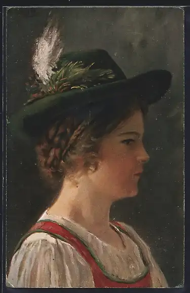Künstler-AK sign. Edm. Louyot: Das Reserl mit Trachtenhut