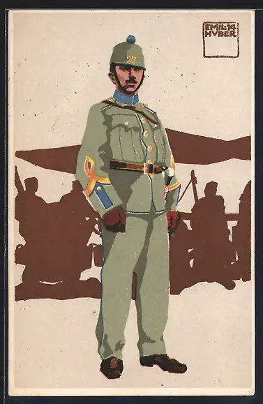 Künstler-AK sign. Emil Huber: Schweizer Soldat, 9. Sanität. Fourier in Felduniform