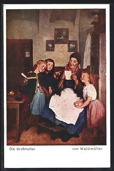 Künstler-AK sign. Waldmüller: Grossmutter liest Kindern vor