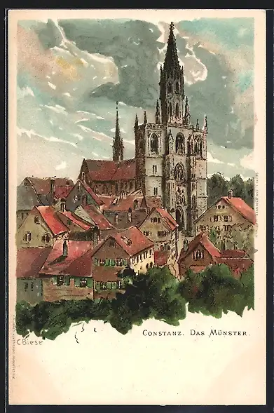 Künstler-Lithographie C.Biese: Constanz, Partie mit dem Münster