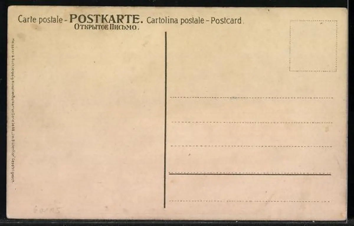 Personenbezogene Daten auf der Rückseite der Karte wurden durch blauen Textmarker unkenntlich gemacht. Die blauen Stellen sind auf die Vorderseite durchgeweicht und wirken sich negativ auf das Postkartenfoto aus