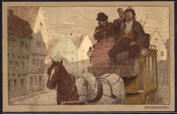 Künstler-Lithographie Paul Hey: Postillon auf dem Kutschbock, Morgenfahrt