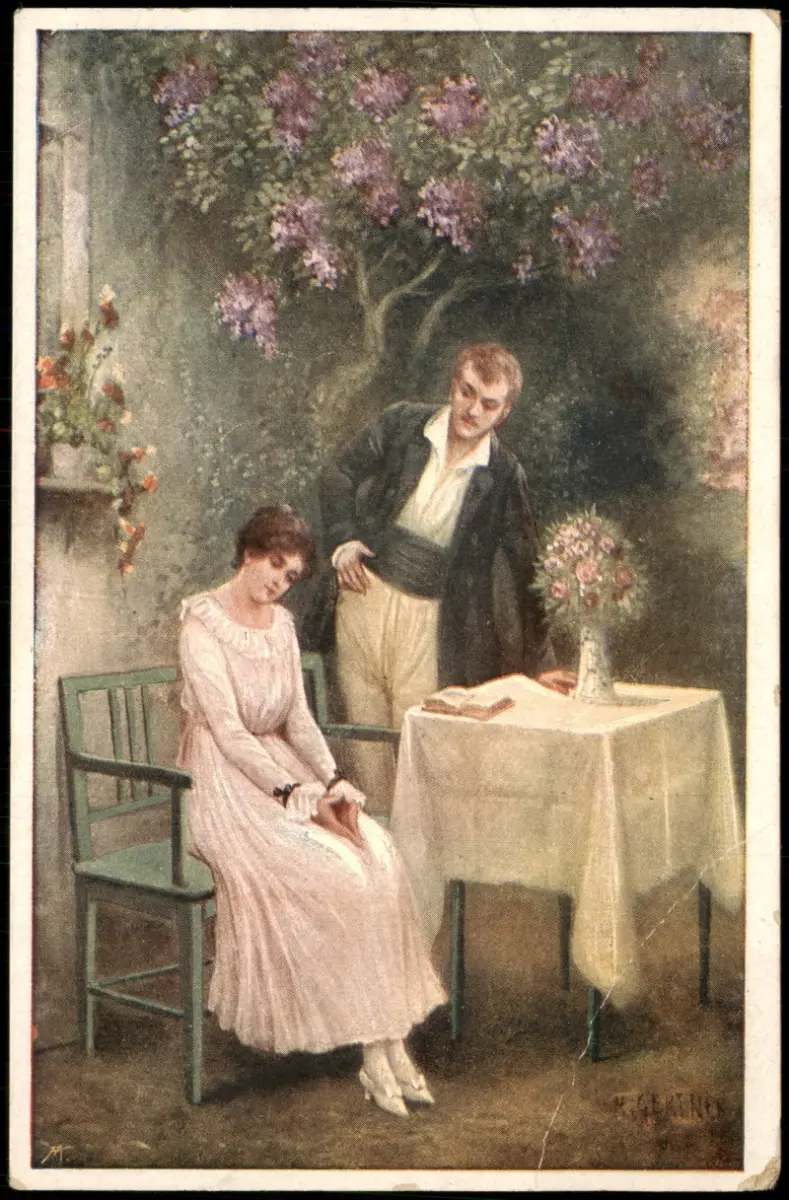 Name: Künstlerkarte Gemälde N. Gerstner pinx. Unterm Fliederbaum, Paar Liebespaar