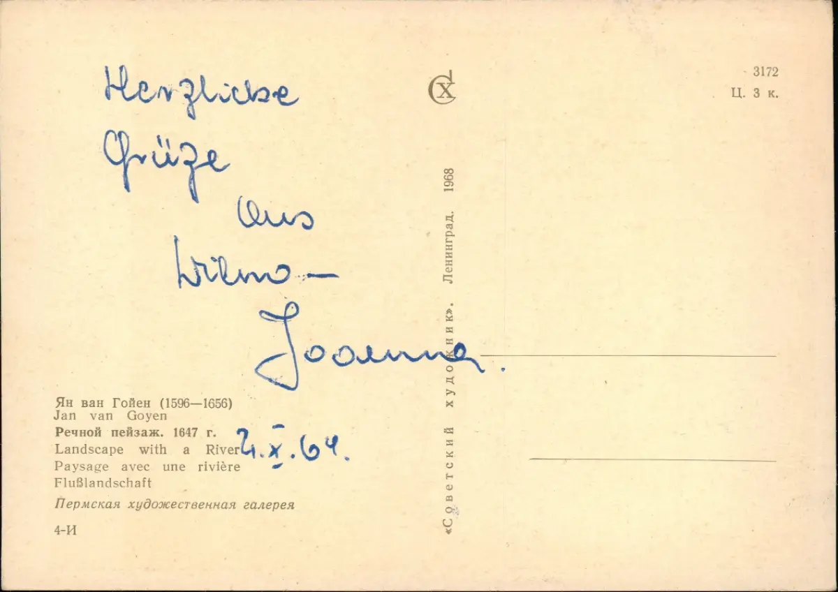 Künstlerkarte (Russland) Jan van Goyen Landscape with a River 1968