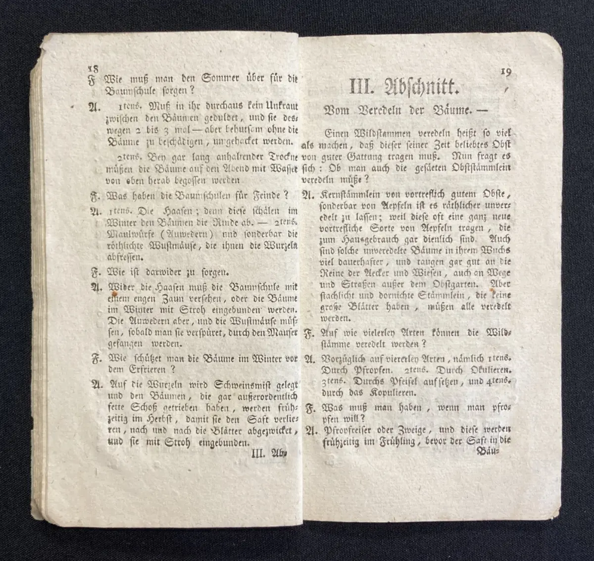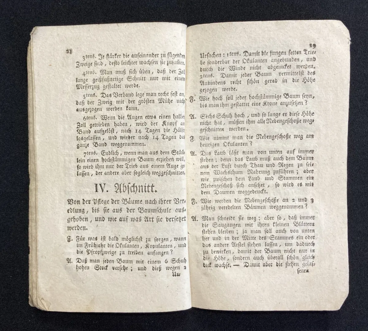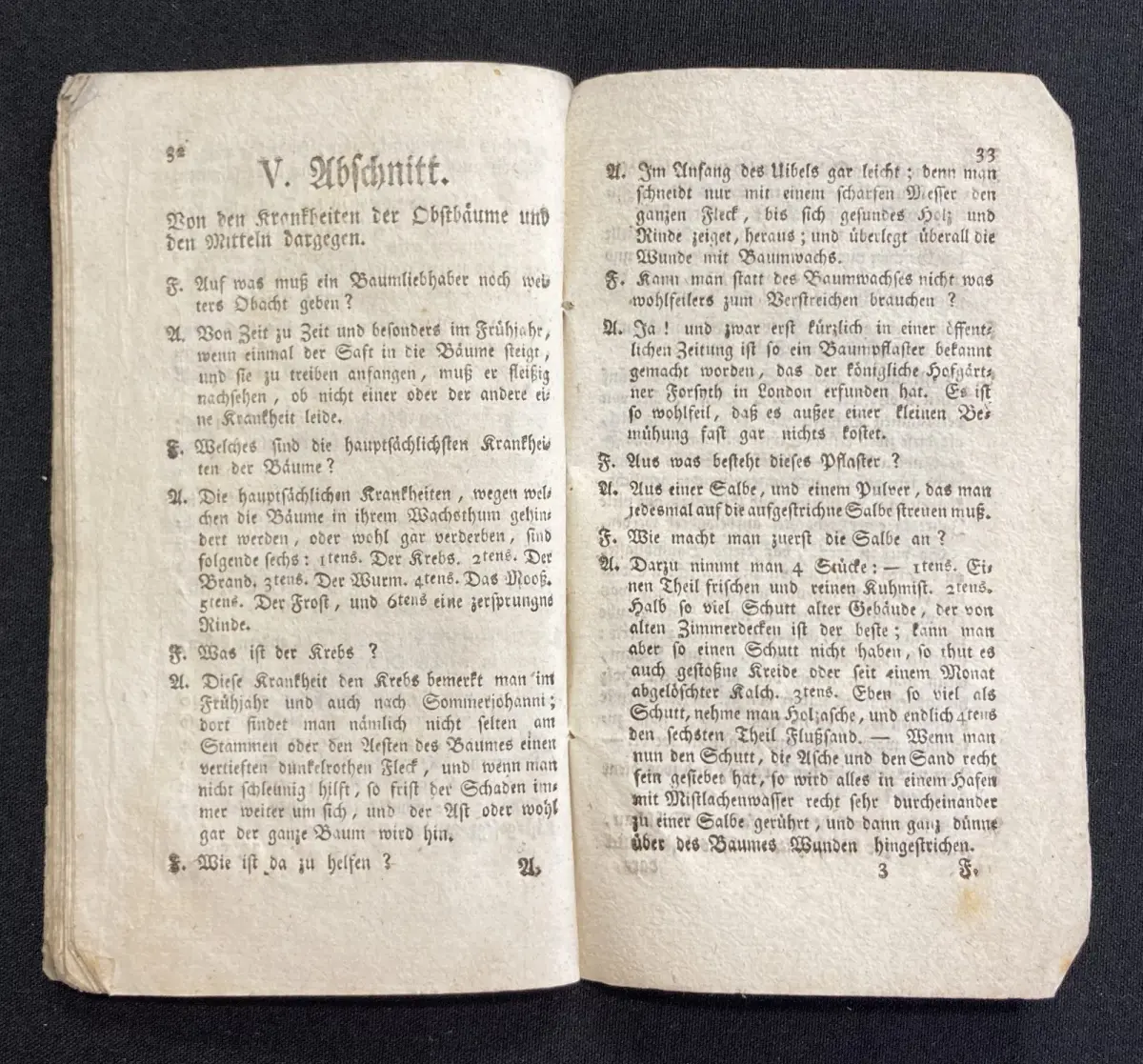 Alle Ecken knickspurig, Rücken wurmspurig. Einband fleckig und ebenso mit Wurmfraß, sowie hinten mit kleinerer Fehlstelle auf dem hinteren Deckel.