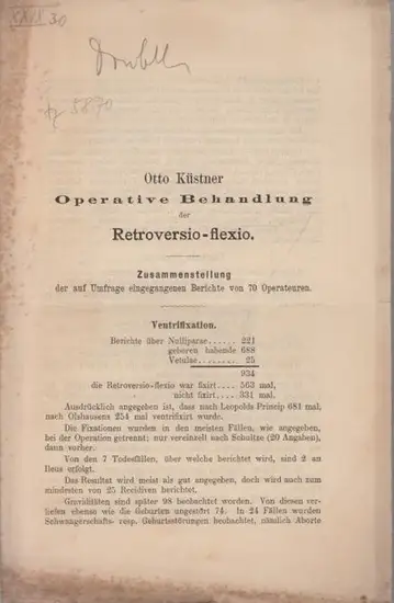 Küstner, Otto: Operative Behandlung der Retro - flexio. Zusammenstellung der auf Umfrage eingegangenen Berichte von 70 Operateuren.