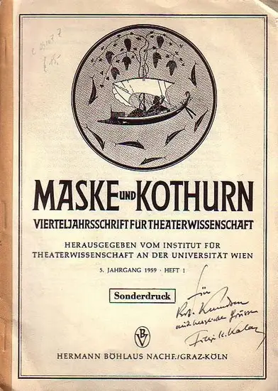 Titel: Das Theater der Renaissance in Dalmatien. In: Maske und Kothurn. Vierteljahresschrift für Theaterwissenschaft. Herausgegeben vom Institut für Theaterwissenschaft an der Universität Wien. 5. Jahrgang 1959, Heft 1. Sonderdruck