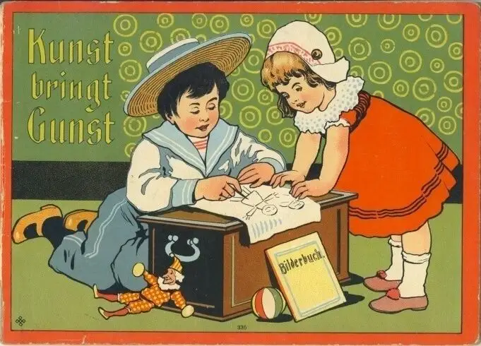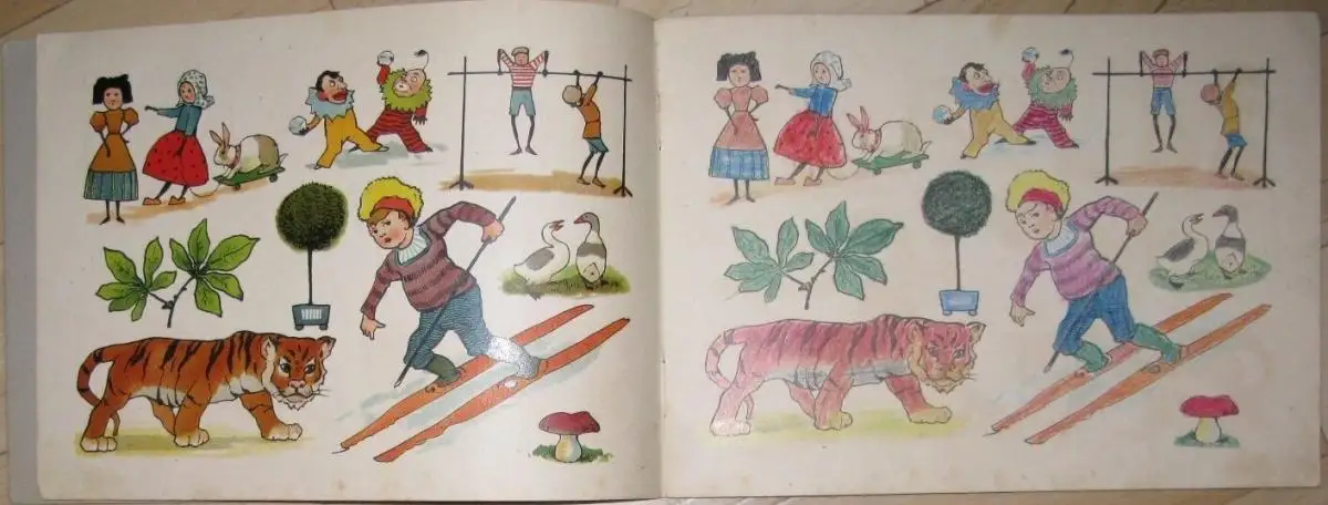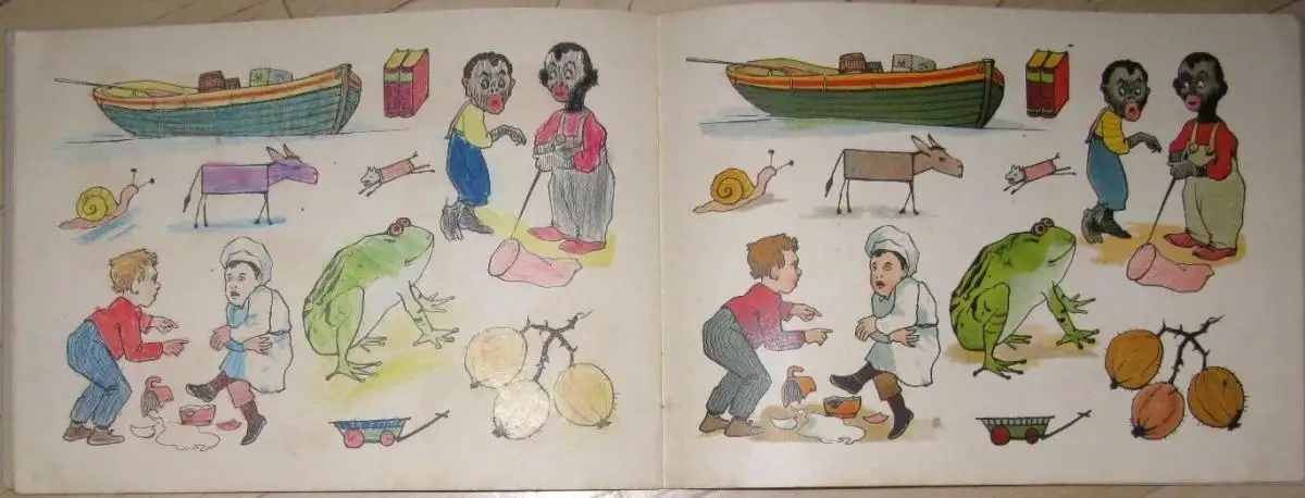 guter Zustand, geringe Gebrauchs- und Alterungsspuren: am Rücken fehlen 2 cm des Bezugspapieres - Einbandecken und -kanten teils gering abgenutzt - alle 4 Malseiten von Kinderhand ausgemalt - Chromlithos überwiegend sauber und ordentlich - selten gering fleckig, Verlag ???? (Verlagsnummer 335) Malbuch / Ausmalbuch, kartoniert, ca. 23 x 16,5, 4 Bildtafeln (Chromlithographien) und 4, jeweils gegenüberliegende schwarzweiß-Tafeln zum Ausmalen