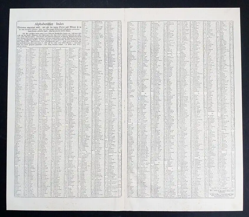 Bemerkungen: Zustand: Blatt leicht fleckig und altersbedingt minimal gebräunt, Kupferstich gebräunt, im oberen Rand etwas braunfleckig, Ecken wenig bestoßen, der mittlere Pfalz rückseitig fachgerecht geklebt // Dekorative figürliche Titelkartusche mit Wappen, Original altkolorierte Kupferstichkarte. Kunstgrafik. Druckgröße: 60 x 53 cm, 2 Nebenkarten: Limburgum Batavumund India oriental. quam Batavorum Navigationes, mit den später hinzugefügten Findebuchstaben und hier dabei zweites Blatt (51 x 63 cm) mit: Alpabetischer Index. Worinnen angezeigt wird / wie alle die jenige Orte und Wörter so in der von Matthaei Seutter / über das Vereinigte Niederlande gestochen particular Land=Karten gedruckter seynd / also gleich gefunden werden können, Titelkartusche mit Allegorien und Wappen von Holland, Zeeland, Utrecht, Geldern, Overijssel, Groningen und Friesland, Zeigt Niederlande und Belgien