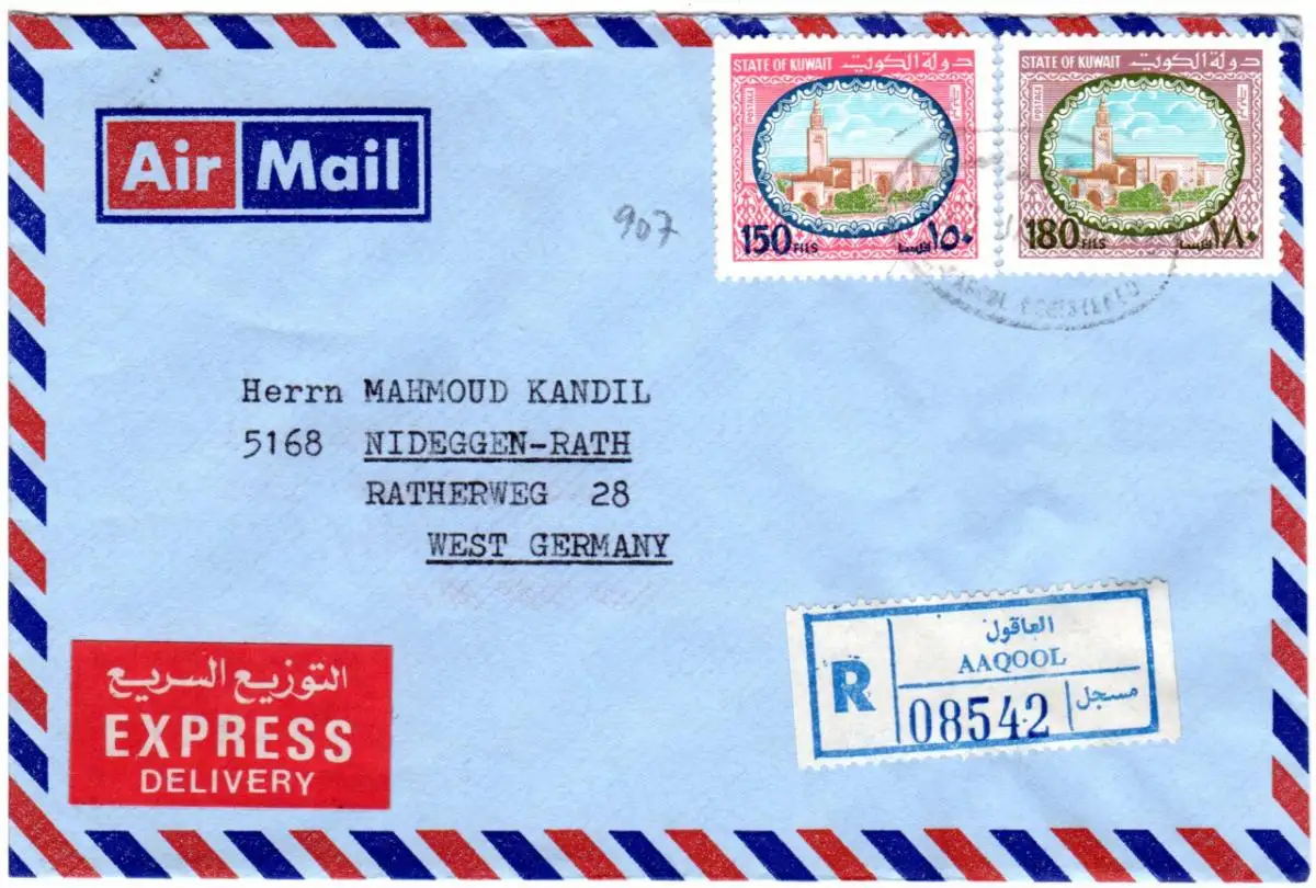 Kuwait 1983, MeF 2x150 F. Sief Palast auf Luftpost Reko-Express Brief v. Aaqool