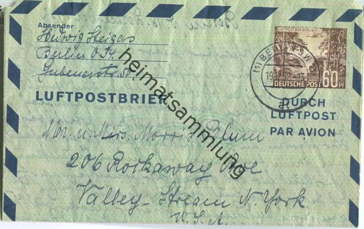 LF 3 - gelaufen am 19.12.1952 von Berlin SW 11 nach New York (USA)