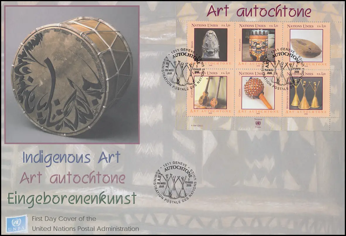L'ONU Genève Bloc 21 Art Indigène 2006 - Block sur Bijoux-FDC Genève