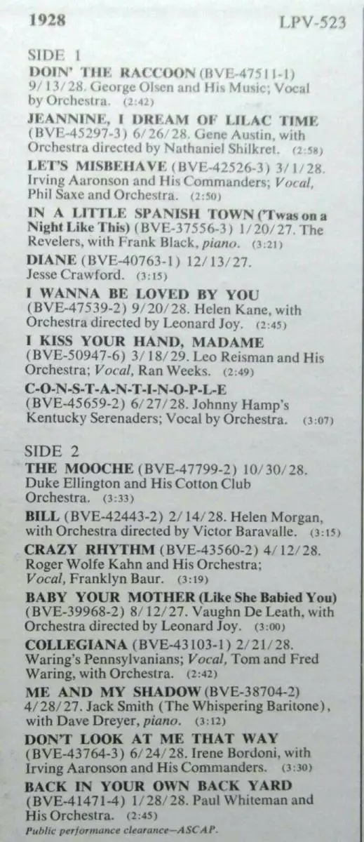 Originalalbum, RCA Records, US Pressung, 1966, feat The Revellers, Duke Ellington, Paul Whiteman, Helen Morgan, Gene Austin, Jesse Crawford, Helen Kane, Fred Waring´s Pensylvanians usw...