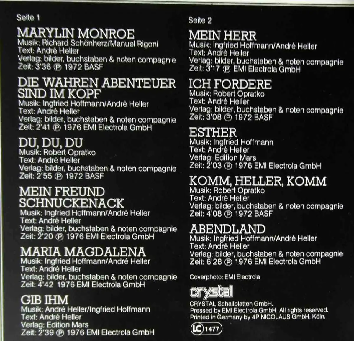 LP André Heller: Stationen (Crystal 038 CRY 45 243) D 1976