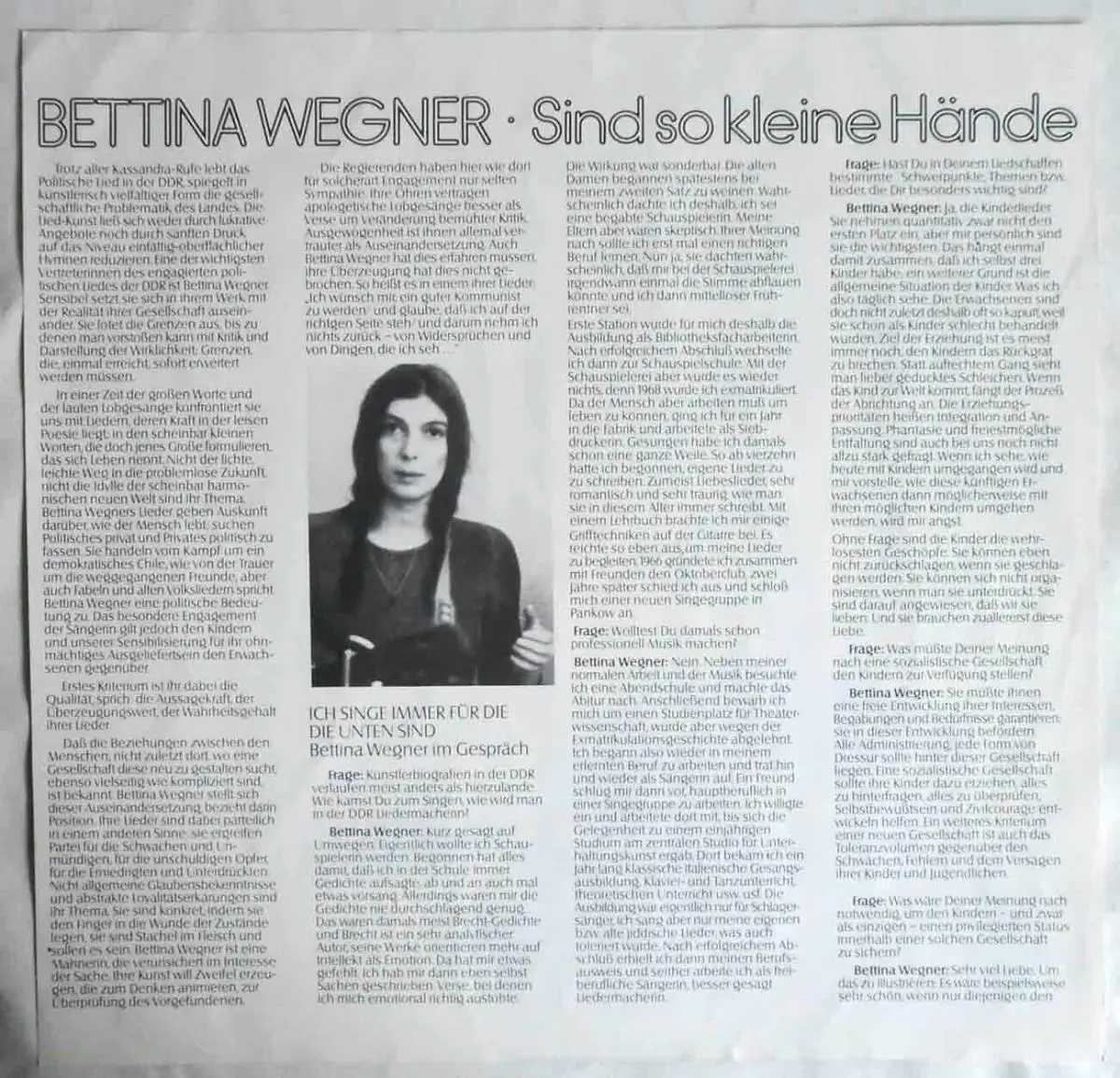 LP Bettina Wegner: Sind so kleine Hände (CBS 83 507) NL