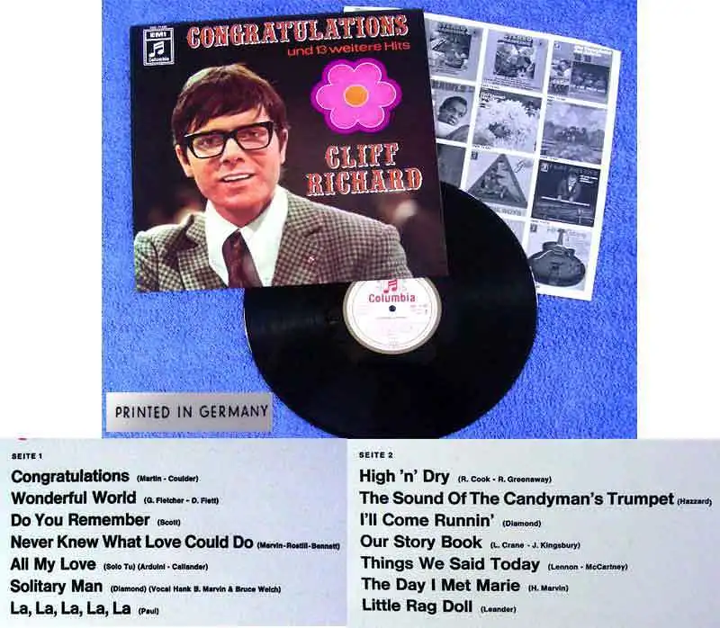 LP Cliff Richard: Congratulations und 13 weitere Hits (Columbia SMC 74 430) D