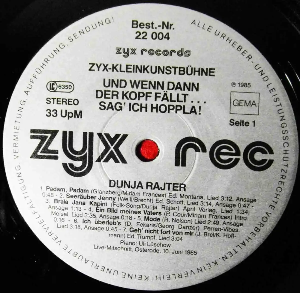 Zyx  Records, seltenes Originalalbum, Live Mitschnitt Osterode 10. Juni 1985