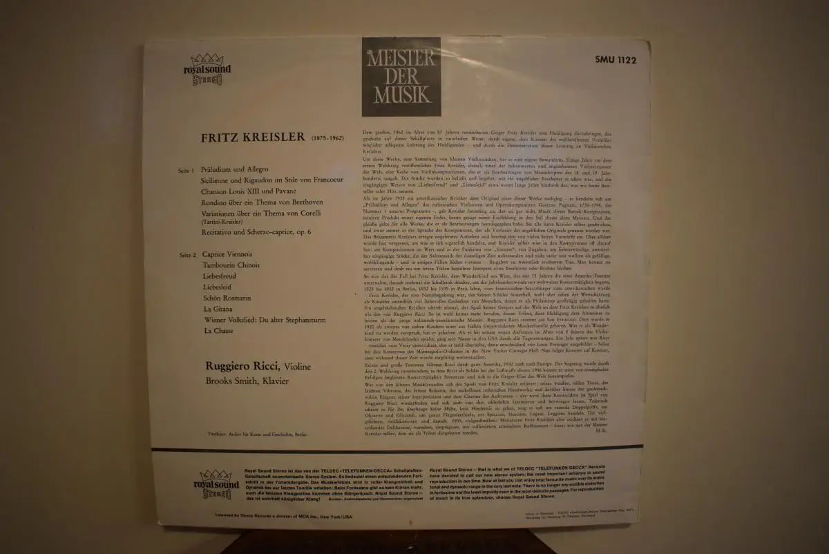 Hier biete ich mal was ganz seltenes an , eine frühe Stereo Aufnahme der Welterfolge von Fritz Kreisler .